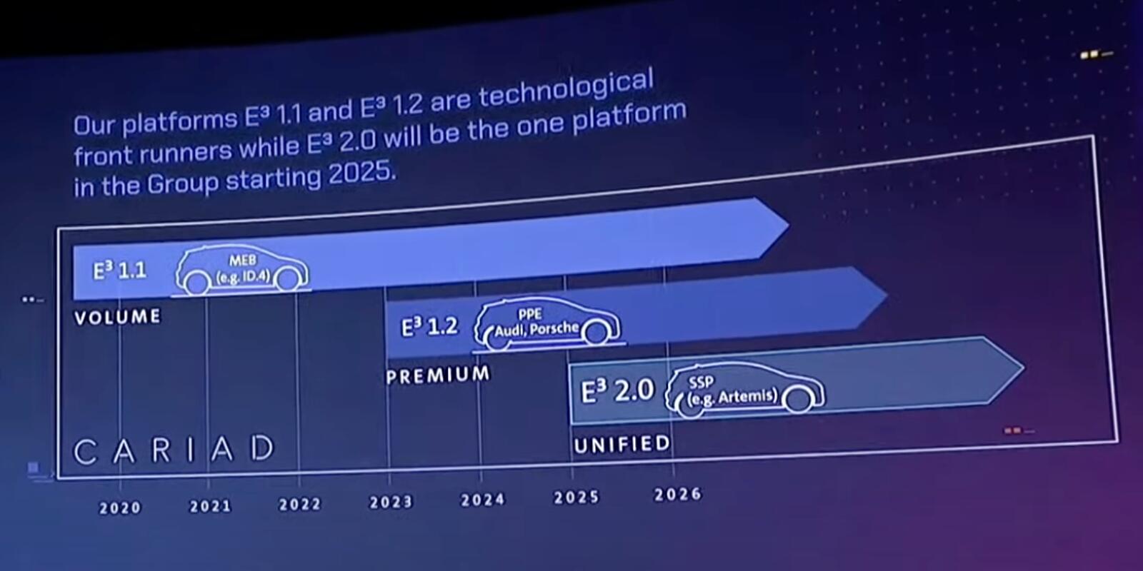 Aktuell kommt Version 1.1 der Software von Volkswagen bei der MEB-Plattform zum Einsatz, dann kommt Version 1.2 mit der PPE-Plattform und ab 2025 werden wir dann Version 2.0 sehen, beginnend mit Projekt Artemis von Audi.