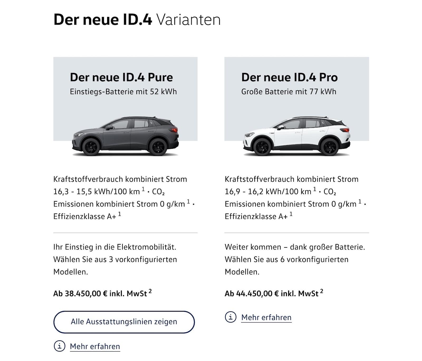 VW ID.4 Pure und VW ID.4 Pro