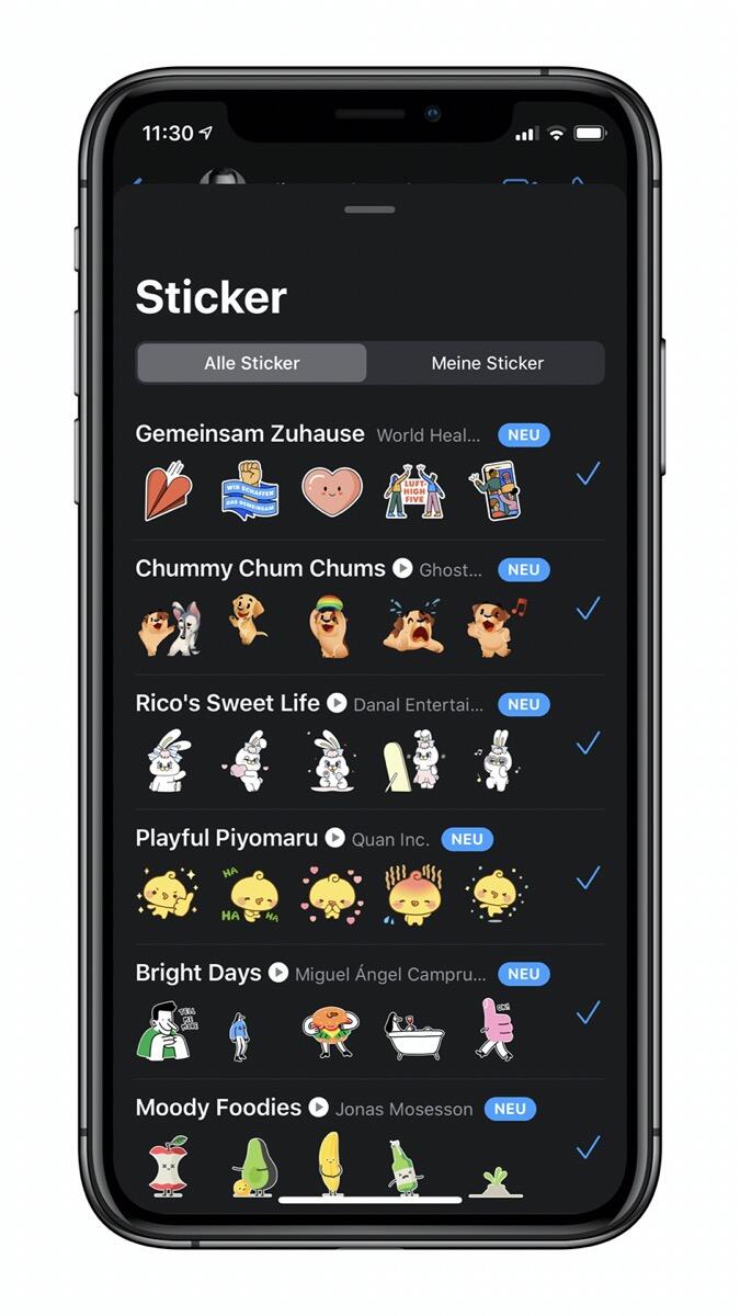 Es gibt auch Verbesserungen bei Gruppen-Videoanrufen. So kann man nun bestimmte Personen durch Tippen und Halten in den Fokus rücken. Was mir persönlich zudem noch gefällt: Auf der Apple Watch sieht man die Sticker nun als große Vorschau.