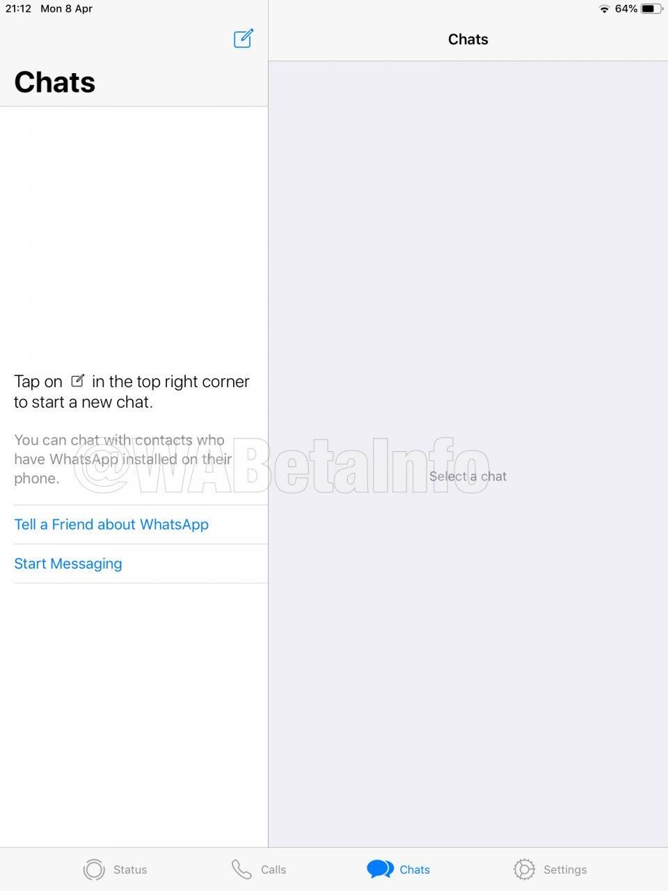 Die wird ein eigenes User Interface bekommen, welches für Tablets gedacht ist und sie soll auch unabhängig funktionieren. Heißt, man kann sich mit einer Nummer anmelden und WhatsApp ganz normal nutzen. Es sollen auch alle aktuellen Funktionen (inklusive Status) der iPhone-App enthalten sein. Es fehlt nur der Kamera-Tab, aber die App ist auch noch nicht final.