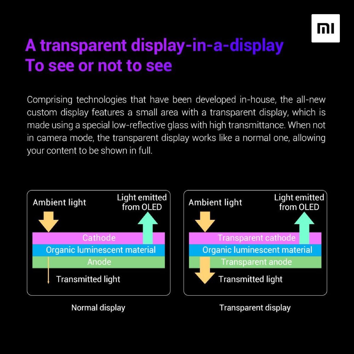 Nach der kurzen Tech-Temo hat sich Wang Xiang noch auf Twitter gemeldet und ein paar Bilder veröffentlicht, die zeigen, wie diese neue Technologie funktioniert. Es handelt sich also um einen kleinen Bereich im Display, der auf Wunsch auch komplett transparent sein kann und dahinter befindet sich die Kamera.