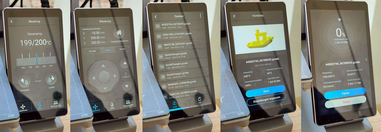 Die Software-Oberfläche des Touchscreens basiert auf Android und ist im Allgemeinen sehr hübsch gehalten und lässt sich intuitiv steuern. Auch während des Drucks lassen sich viele Einstellungen noch ganz bequem ändern.