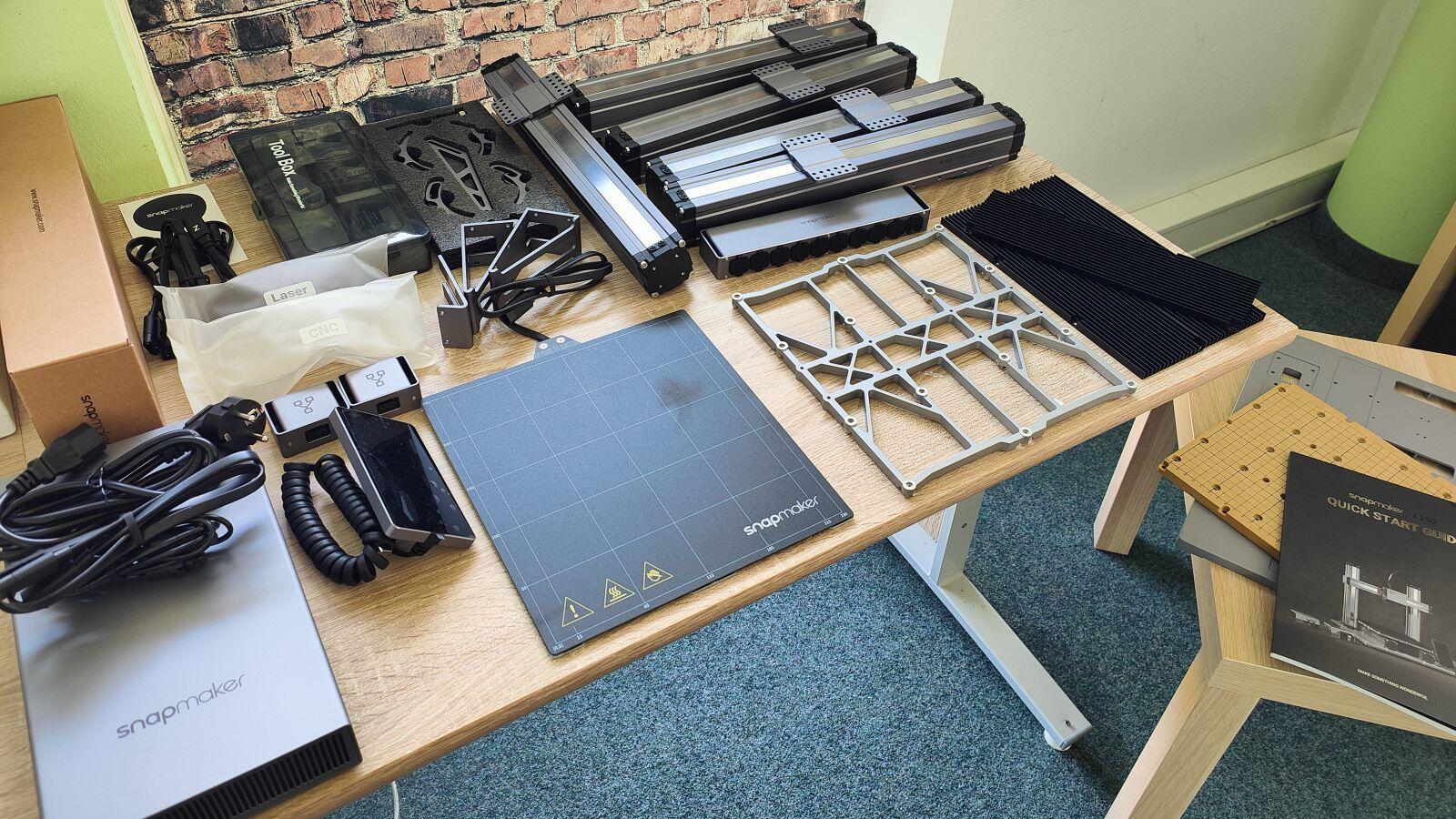 Ich muss sagen, dass der komplette Karton der schwerste gewesen ist, den ich in meinen 8 Jahren 3D-Drucker jemals zugeschickt bekommen hatte. Das liegt unter anderem daran, dass für den Snapmaker wirklich nur super hochwertige Materialien verwendet wurden.