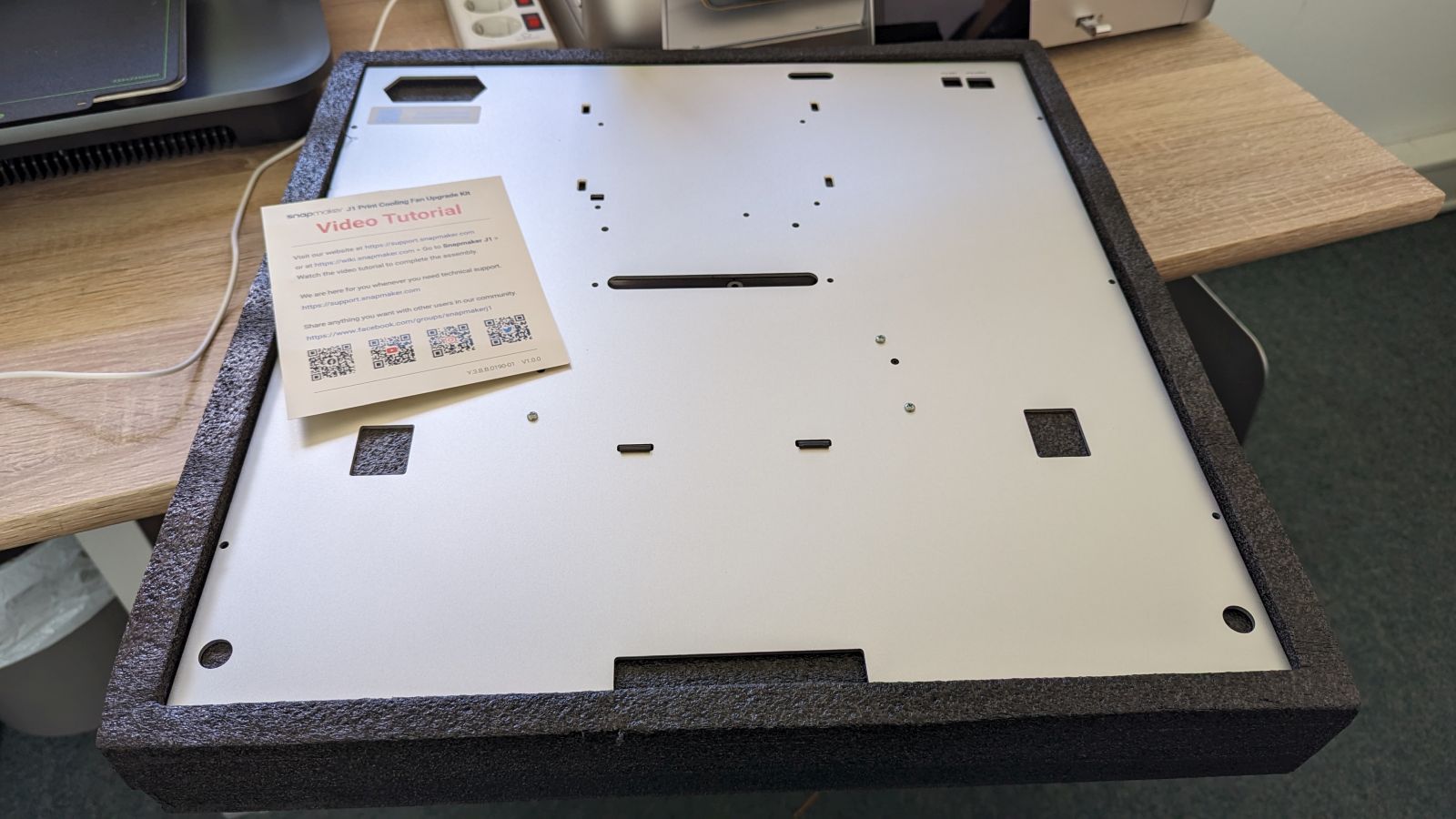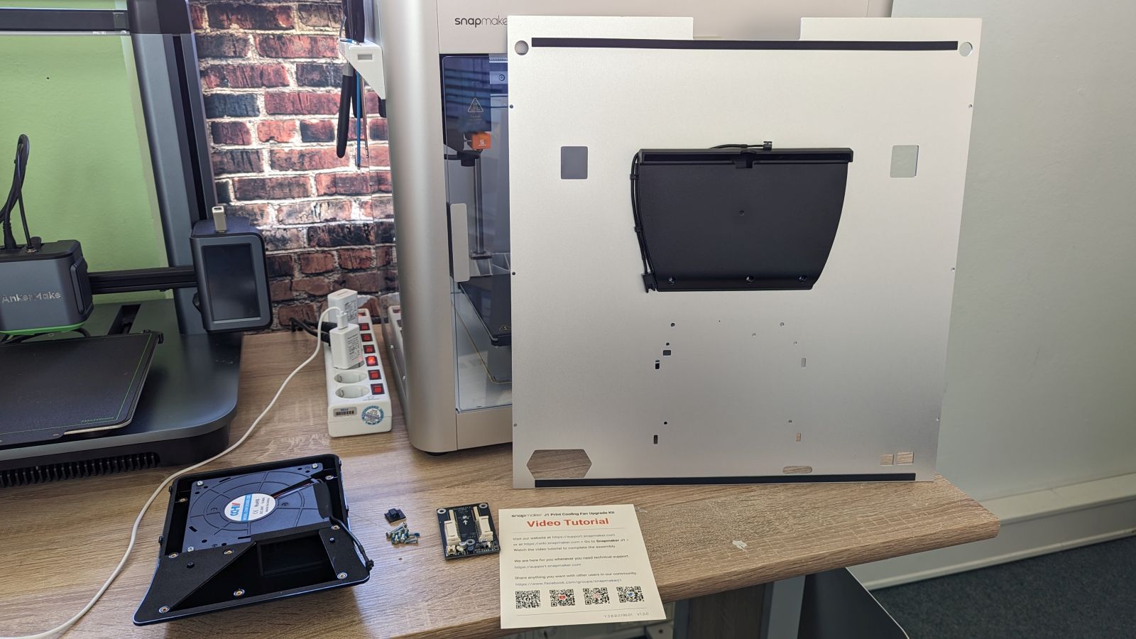Doch man muss sich nun nicht gleich einen neuen Drucker kaufen, um an den neuen Lüfter zu gelangen. Wahlweise können Besitzer des Snapmaker J1 nun ein so genanntes Print Cooling Fan Upgrade Kit für 69 EUR zzgl. Versandkosten erwerben und so ihren J1 um den Lüfter auf der Rückseite erweitern. Dieses Kit wurde mir zugeschickt und ich habe es montiert. Dazu nun also in den kommenden Zeilen mehr.