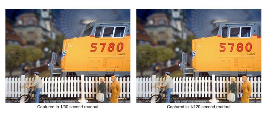 Das verschafft vor allem auch einen Zeitvorteil und sorgt dafür, dass man mit dem Sensor 1080p-Videoaufnahmen mit 1000 fps aufzeichnen kann. Natürlich kann man auch mit 260 fps aufnehmen (neben 1080p auch 720p) und bei 4K-Aufnahmen gilt ein Limit von 60 fps. Die effektive Auflösung beträgt 21,2 (5520 x 3840) Megapixel.