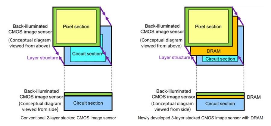 Sony Global hat heute in einer Pressemitteilung einen neuen Sensor für Kameras in Smartphones vorgestellt. Es ist der erste „3-Layer Stacked CMOS Image Sensor mit DRAM für Smartphones“. Dieser Sensor hat also eine dritte Ebene mit DRAM, auf der Daten gespeichert und später vom Smartphone verarbeitet werden können.