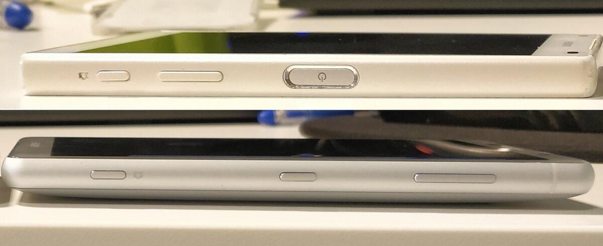 Ein Modell könnte das Sony Xperia XZ2 Compact sein und das ist nun auf einem Bild zu sehen. Das Bild zeigt leider nur die rechte Seite des Gerätes, dafür sieht man den Prototyp im Vergleich mit dem Xperia Z5 Compact. Und da erkennt man schon mal, dass Sony eine neue Designsprache bei den Xperia-Modellen einführen wird.
