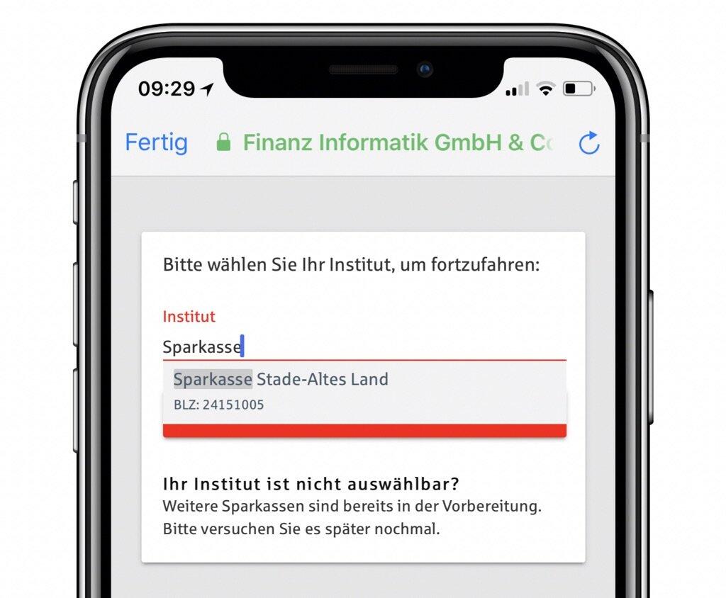 In meinem Test konnte ich ausschließlich die Sparkasse Stade Altes Land hinzufügen. Kunden sollen sich an ihre Sparkasse vor Ort wenden und dort erfragen, wie es mit dem Support für die App ausschaut. Nicht schön, aber immerhin ein erster Schritt ist gemacht.