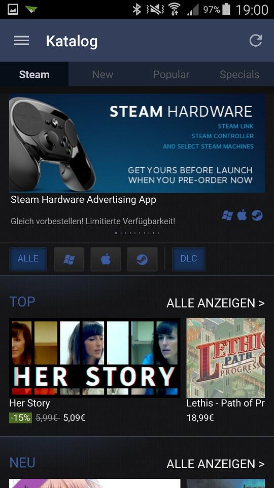 Steam-App für Android mit Ansätzen von Material Design