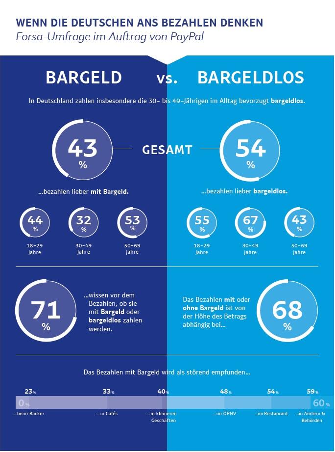 Erstens möchten Verbraucher unabhängig davon, wie viel Bargeld sie dabei haben, auch spontan einkaufen können. Zweitens antworten knapp zwei Drittel der Befragten, dass sie selbst entscheiden möchten, wie sie bezahlen. Insbesondere bei Ämtern und Behörden, in Restaurants und öffentlichen Verkehrsmitteln wie Bus und Straßenbahn stört es sie, dass ihnen diese Entscheidungsfreiheit fehlt, wenn sie ausschließlich mit Bargeld zahlen können.