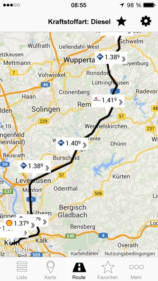 Leider gibt es keinen Preisalarm und in den Favoriten werden die Bezinpreise nicht in der Übersicht angezeigt, zudem fehlen entlang der Routen (noch?) diverse Tankstellen, die in anderen Apps vorhanden sind.