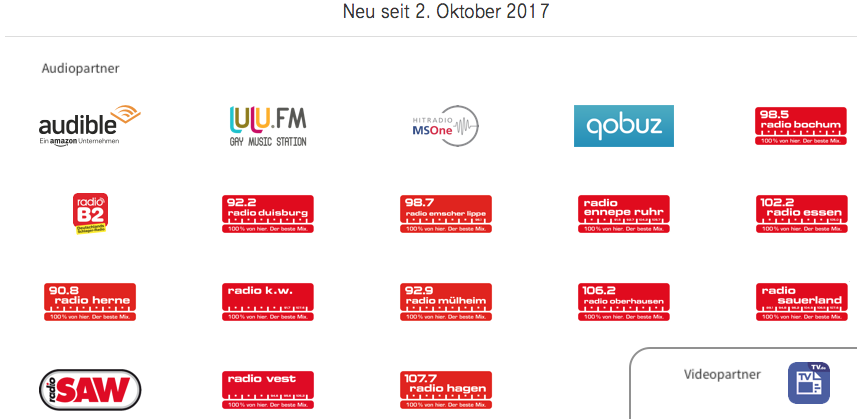 Folgende Musik- und Audio-Streaming-Dienste sind Partner von StreamOn: