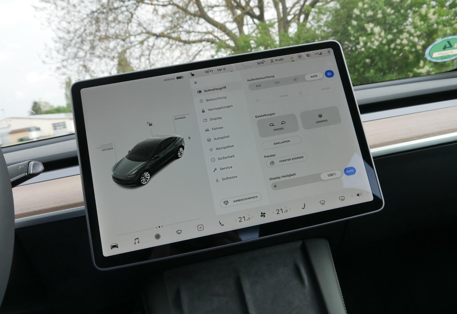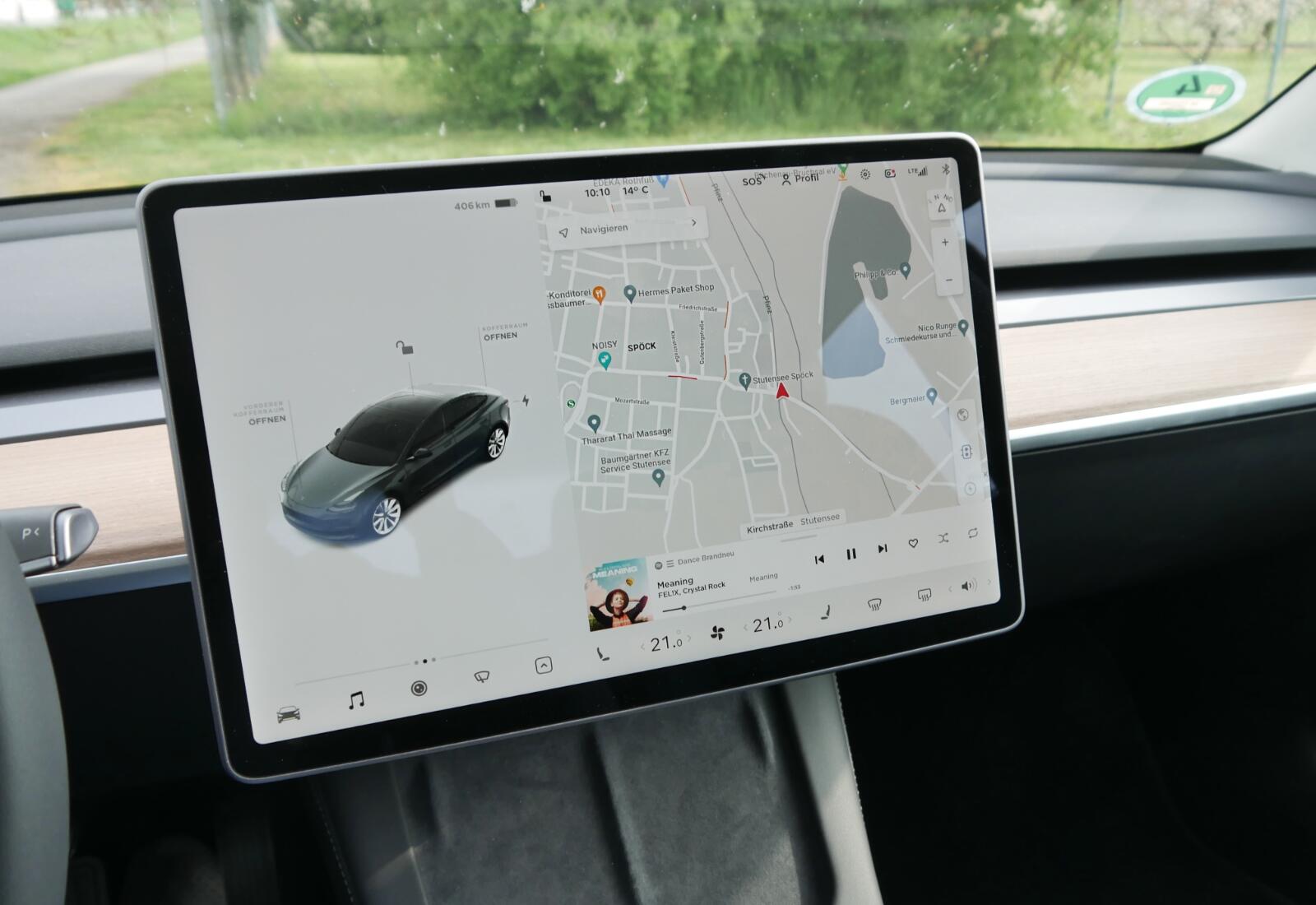 Die Software ist etwas, das viele bei Tesla loben und das hat auch einen guten Grund. Das große „Tablet“ in der Mitte ist schön hell, löst hoch auf und das OS ist sehr flott unterwegs. Es erinnert vom Aufbau und der Optik an iOS, hier und da sogar wie eine Kopie. Es ist aber aktuell mit das flüssigste OS auf dem Markt.