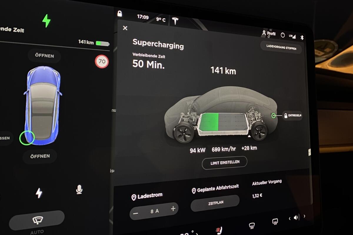 - Die Anzeige der erlaubten Geschwindigkeit beim Navi ist oft ungenau, für meinen Geschmack kommt das zu häufig vor. Da müsste Tesla ein besseres System bauen, vor allem mit Hinblick auf autonomes Fahren.