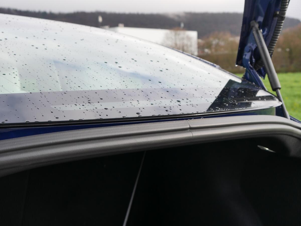 Das Glasdach hinten ist so gebogen, dass das Wasser direkt vom Glas in den Kofferraum läuft, wenn man ihn öffnet. Das geht eigentlich nicht, aber vielleicht hat es bei den Tests im sonnigen Kalifornien nie wirklich geregnet.