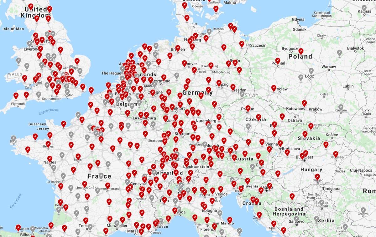Einfach nur parken, Ladekabel rein und gut. Der Rest wird über die App erledigt. So sieht übrigens aktuell das Supercharger-Netz bei uns aus: