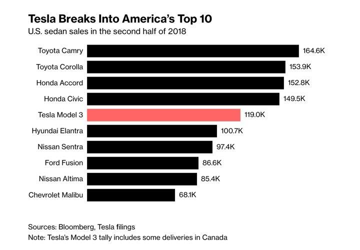 In den USA findet man es sogar in den Top 10 auf Platz 5 der erfolgreichsten Autos 2018, wenn wir über Limousinen sprechen. Mit Blick auf alle Autos landet das Model 3 auf Platz 11. Damit darf man in den USA durchaus über einen Erfolg auf dem Massenmarkt sprechen, auch wenn es immer noch sehr teuer ist.
