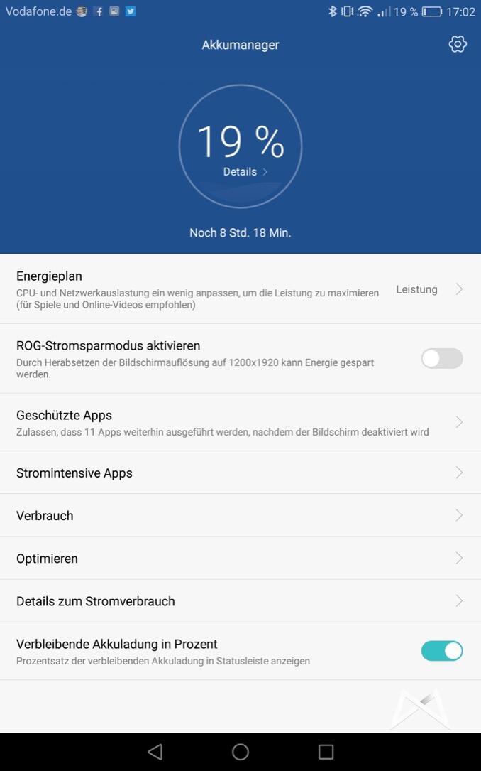 - Bei einem über 5000 mAh Akku und einem Tablet ist es nicht einfach eine Aussage über die Akkuleistung zu treffen. Der eine schaut mehr Filme auf einem Tablet, der andere nutzt es als Business-Maschine und ist 24/7 online, checkt Mails, telefoniert, präsentiert etwas darauf usw. In meinem Fall bin ich locker über 2 Tage gekommen. Nutzungsprofil ist im Grunde alles gemischt. LTE, Bluetooth, WLAN, alles immer an. Dann auch mal einen Film darauf angeschaut und ein bisschen hier und da Screenshots gemacht und die Kamera getestet. Dabei wurde das Tablet aber im Gegenteil zu einem Smartphone nicht komplett rund um die Uhr befummelt. Ich würde zusammengerechnet auf irgendwas zwischen 10 und 11 Stunden kommen. Diese Zeit dürfte beim reinen Spiele zocken beispielsweise aber deutlich unterboten werden.