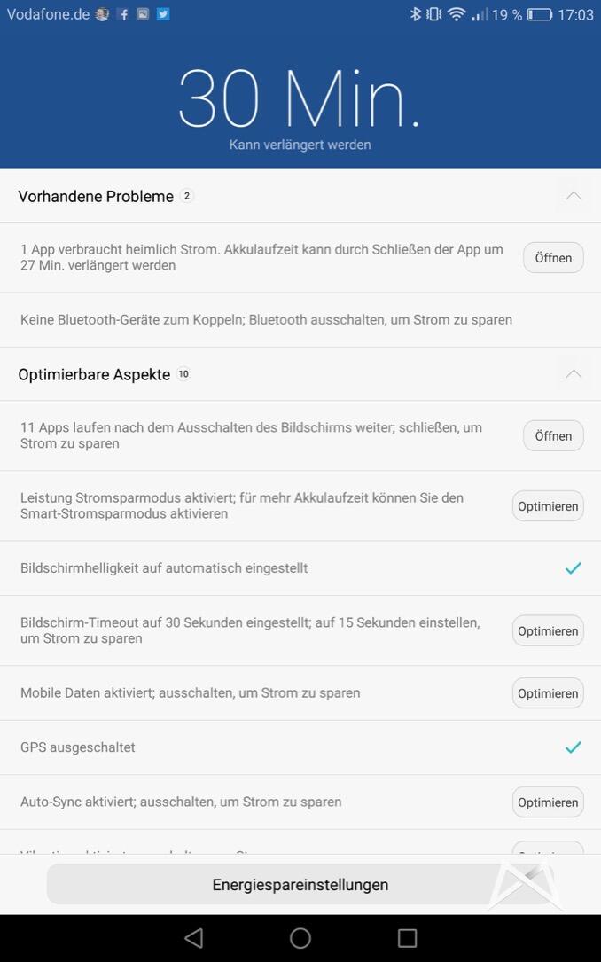 - Bei einem über 5000 mAh Akku und einem Tablet ist es nicht einfach eine Aussage über die Akkuleistung zu treffen. Der eine schaut mehr Filme auf einem Tablet, der andere nutzt es als Business-Maschine und ist 24/7 online, checkt Mails, telefoniert, präsentiert etwas darauf usw. In meinem Fall bin ich locker über 2 Tage gekommen. Nutzungsprofil ist im Grunde alles gemischt. LTE, Bluetooth, WLAN, alles immer an. Dann auch mal einen Film darauf angeschaut und ein bisschen hier und da Screenshots gemacht und die Kamera getestet. Dabei wurde das Tablet aber im Gegenteil zu einem Smartphone nicht komplett rund um die Uhr befummelt. Ich würde zusammengerechnet auf irgendwas zwischen 10 und 11 Stunden kommen. Diese Zeit dürfte beim reinen Spiele zocken beispielsweise aber deutlich unterboten werden.