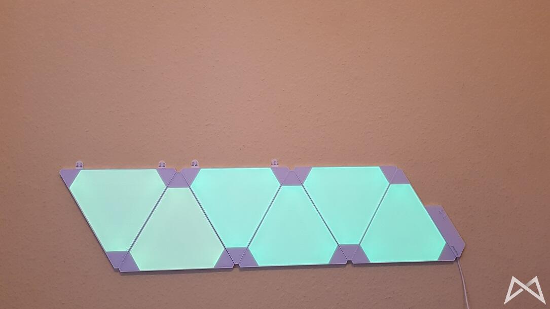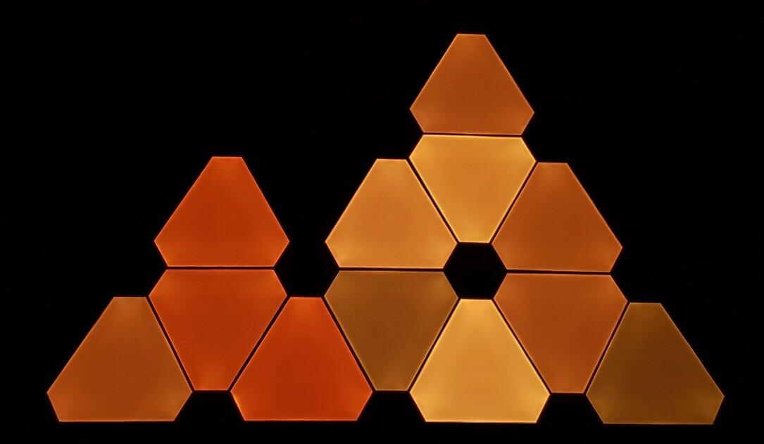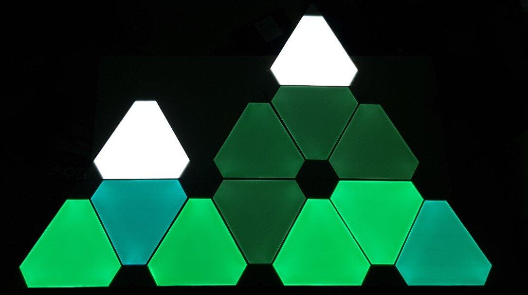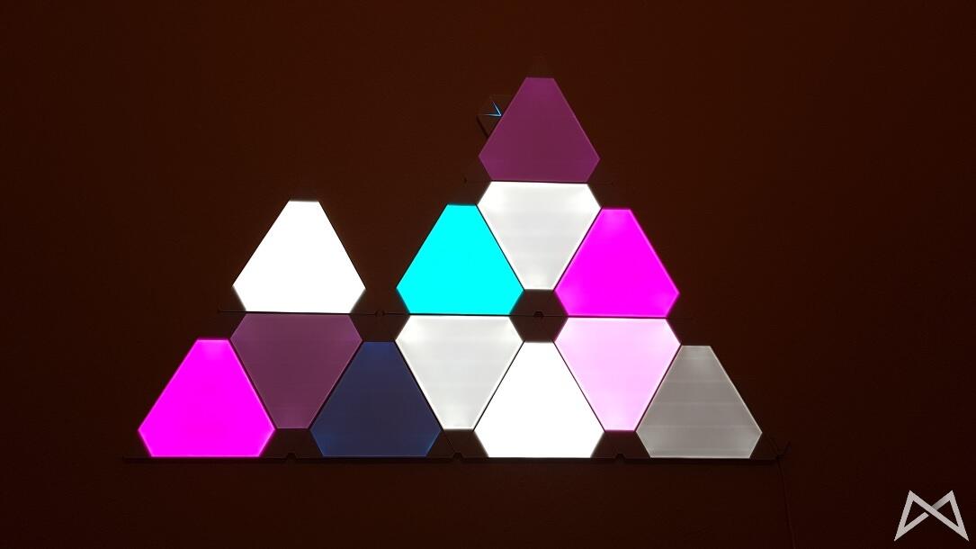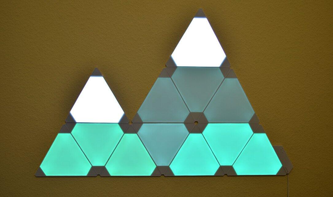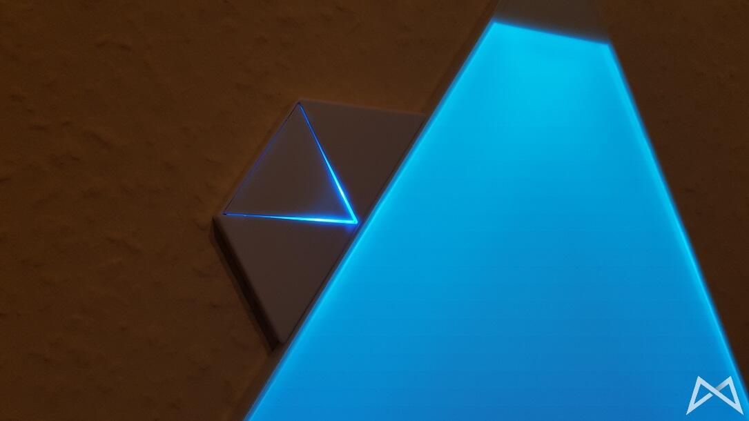 Das neueste Produkt von Nanoleaf ist besagtes „Aurora“. Es handelt sich dabei um ein smartes Beleuchtungssystem mit komplett anderem Ansatz als bei z.B. Philips Hue. Dabei setzt man nicht auf übliche Leuchtmittel, sondern dreieckige LED-Panel zur Wandmontage. So dient Nanoleaf Aurora als dekoratives Stimmungslicht – kann durch die hohe Leuchtkraft aber theoretisch auch die Raumbeleuchtung eines kleinen Zimmers ersetzen.