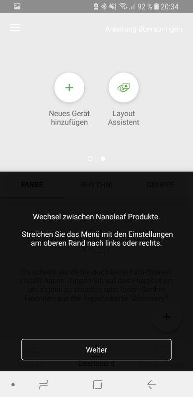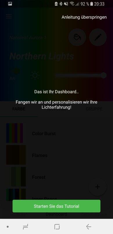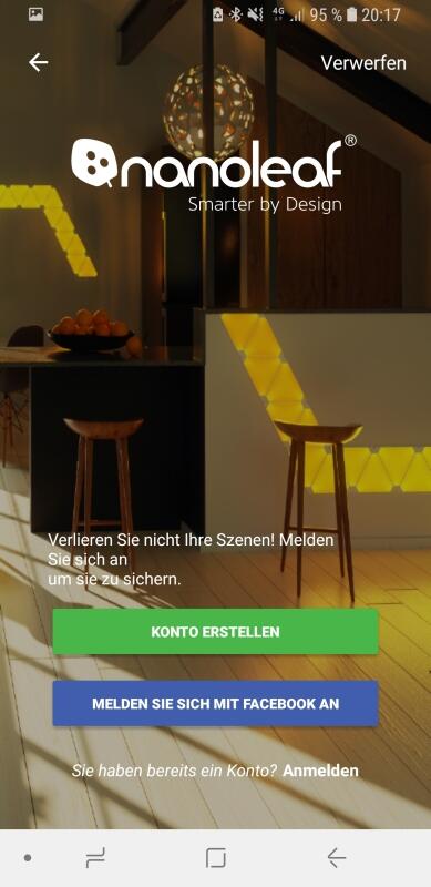 Auch die Kopplung zwischen Nanoleaf Aurora und dem Smartphone sollte am besten noch vor der Anbringung an der Wand erfolgen. Der Grund dafür ist simpel: Wenn eines der Bauteile nicht funktionieren sollte, darf man sonst alles wieder runterreißen. Die Kopplung und Konfiguration ist aber in wenigen Schritten erledigt.