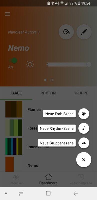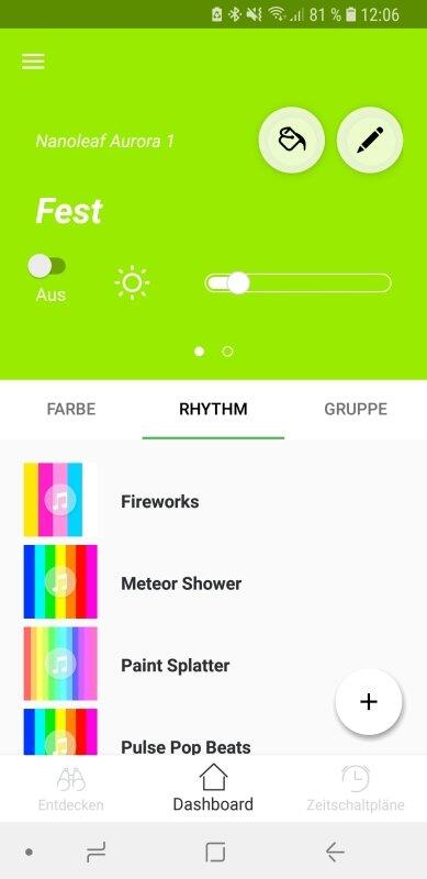 Vorhanden sind allerdings sowieso nur die Grundfunktionen. So ist es möglich, die Helligkeit zu regeln, Szenen durchzuschalten und Nanoleaf ein- oder auszuschalten. Alle weiteren Funktionen gibt es nur über die Nanoleaf-App.