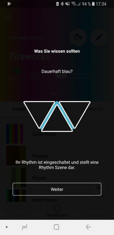 Da ich auch das Rhythm-Modul testen konnte, möchte ich auch zu diesem noch ein paar Worte verlieren. Dieses wird ähnlich wie die Steuereinheit einfach an ein beliebiges Nanoleaf-Panel gesteckt und ist dann sofort einsatzbereit. Beim Starten der App wird sofort ein Tutorial eingeblendet, welches durch die wichtigsten Schritte führt.