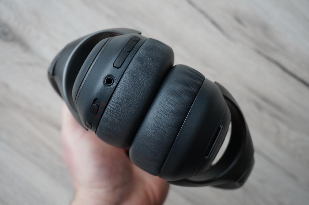 Der Mute BT wirkt durchaus robust und ist beim Bügel etwas flexibel, hier und da habe ich aber auch ein leichtes Knarzen beim Bewegen gehört. Die Bedienelemente befinden sich auf der linke Seite (am unteren Ende der Hörmuschel). Die Tasten haben einen guten Druckpunkt, sind aber auch nicht wirklich hochwertig.