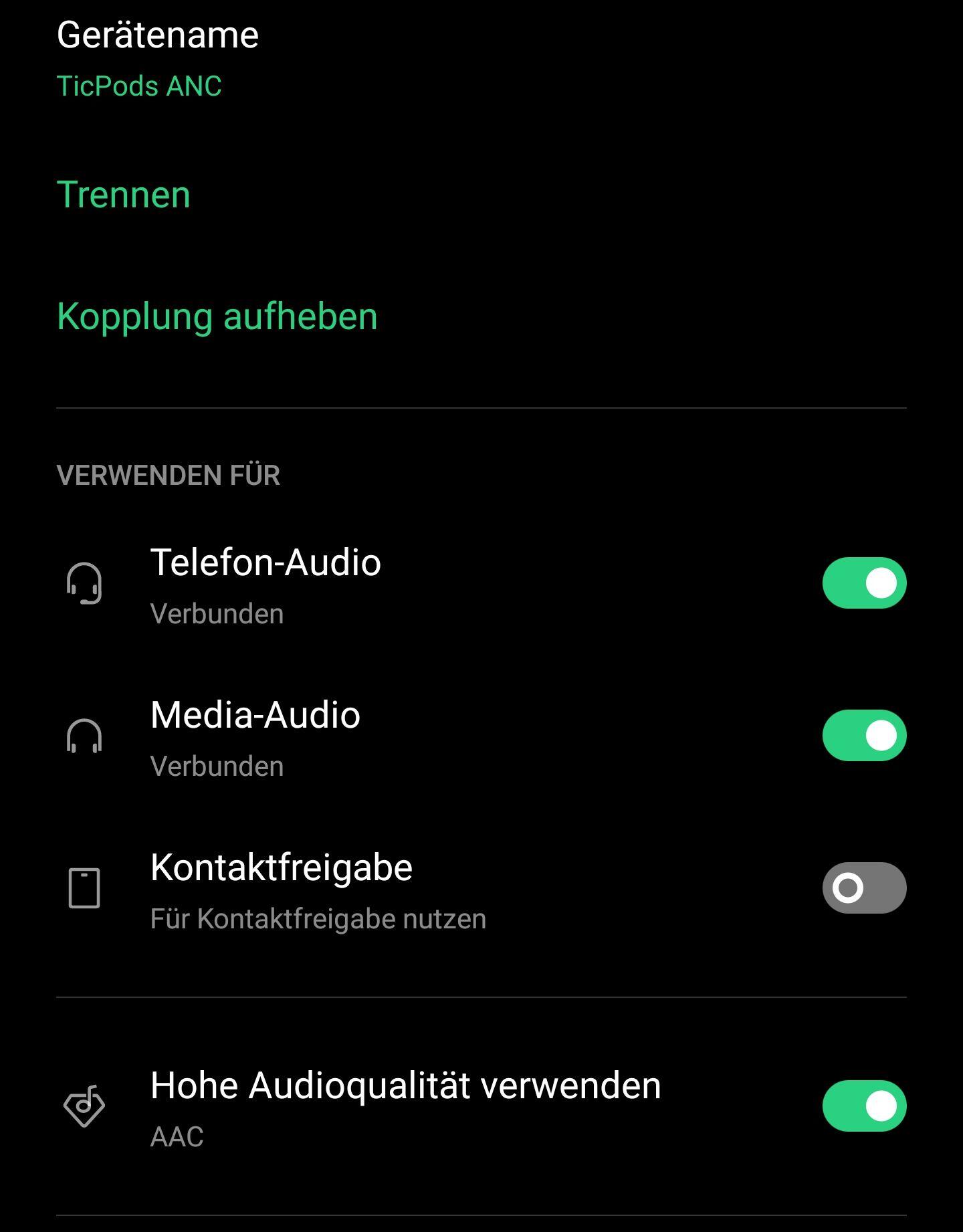 Es scheint also tatsächlich so zu sein. Ihr müsst, wenn ihr zwei verschiedene Abspielgeräte nutzen möchtet, immer nach Beendigung die TicPods ANC in euren Bluetooth-Einstellungen entkoppeln. Nur dann könnt ihr sie beim nächsten mal auch sicher wieder an das nächste Gerät koppeln.