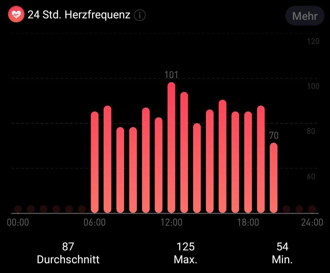 Der Herzfrequenzmesser kann so eingestellt werden, dass er 24h die Herzfrequenz misst. In diesem Fall wird alle 10 Minuten ein Check gemacht, der dann auch über die Fitness-App abgerufen werden kann.