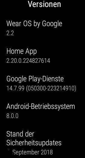 Aktuell befindet sich WearOS 2.2 mit Android 8.0.0 auf der TicWatch C2. Letztes Sicherheitsupdate ist vom September 2018.