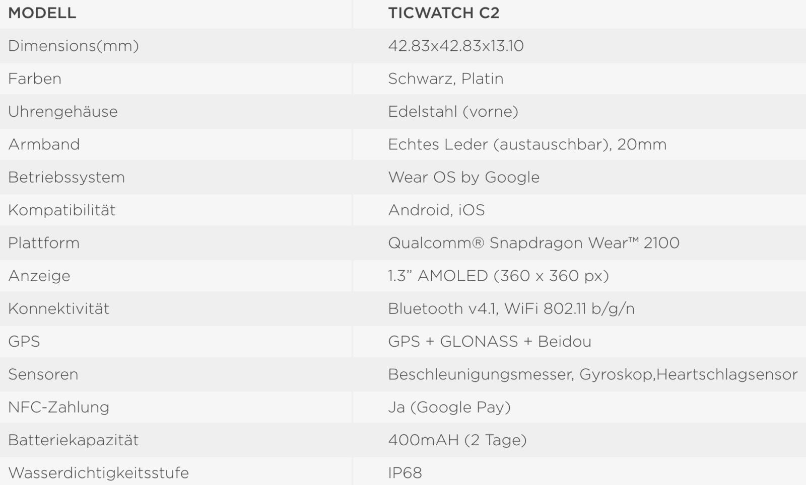 Die TicWatch C2 ist minimalistisch elegant gehalten und ist in verschiedenen Farben erhältlich. Preislich liegen wir aktuell im Mobvoi-Shop bei 199,- EUR.