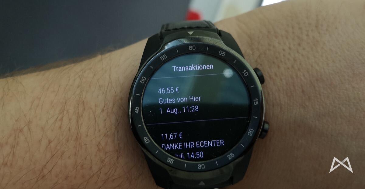 Nun genügt es die Ticwatch Pro kurz an das Terminal zu halten und schon signalisiert ein vibrieren, dass die Karte/Uhr erkannt wurde. Ein, zwei Augenblicke später steht dann auf dem Terminal dran, dass die Karte akzeptiert wurde. Fertig. :)