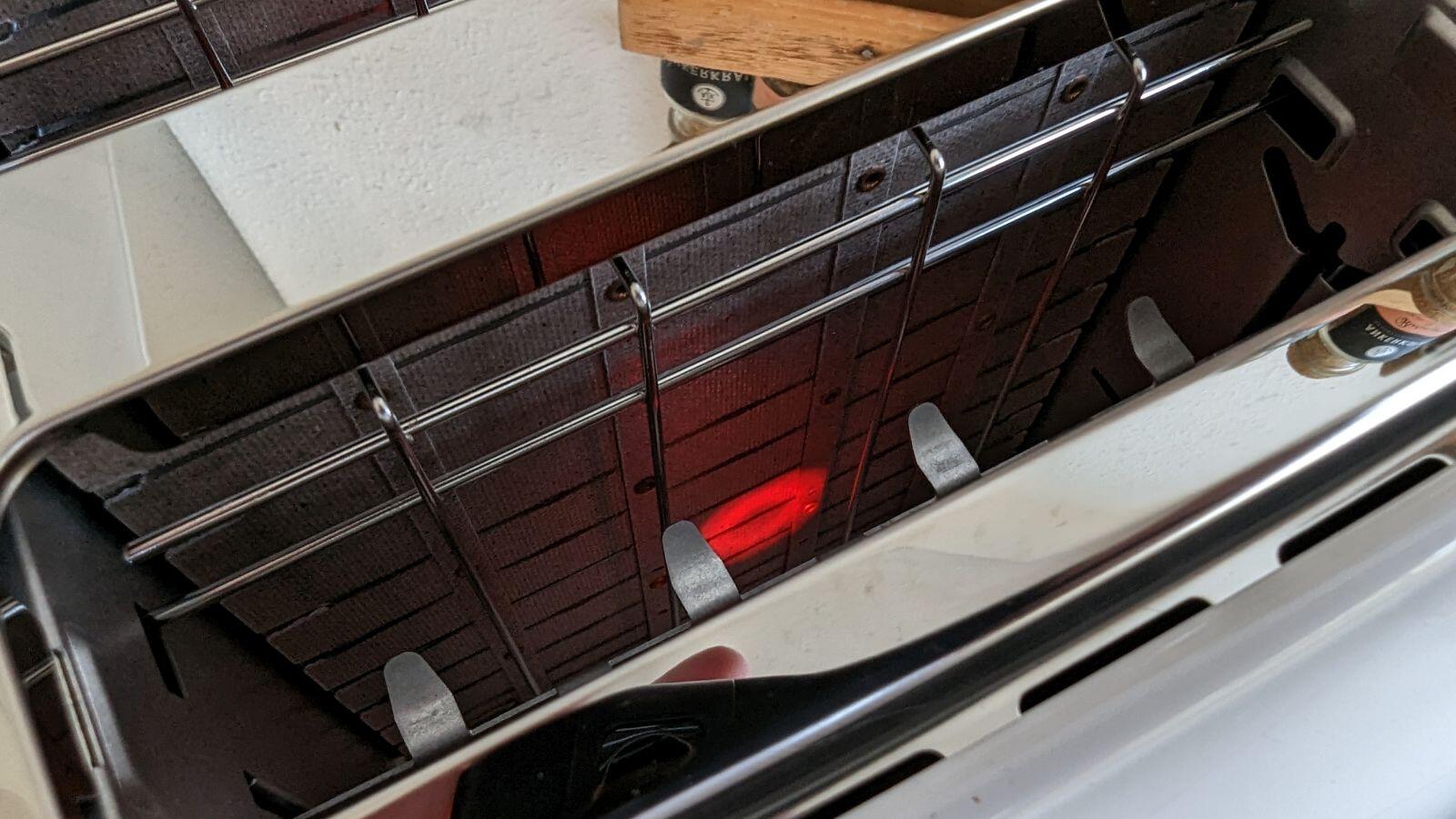 Nachdem der IntelliHeat-Sensor mittig angebracht ist, ist es nicht ratsam sehr schräge Scheiben selbst geschnittenes Toastgut einzulegen. Dadurch kann es auch passieren, dass die dicke Stelle der Brot-Scheibe zu lang und zu nah an den Heizspiralen hängt und verkohlt. Das kann aber mit einem normalen Toaster auch passieren, von daher geht dieser Punkt nicht negativ in meine Bewertung ein.