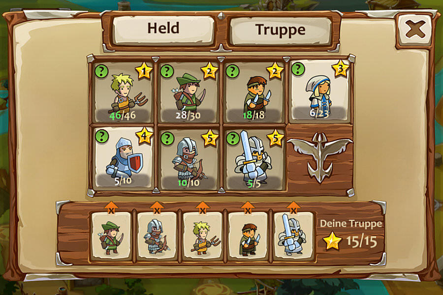 Die Abschnitte unterscheiden sich nur optisch und haben keine Auswirkungen auf die Spielmechanik. Die Gegner werden stärker und vielfältiger, die Ausrüstung lässt sich minimal verbessern und man kann sich ein Team aus Kämpfern zusammenstellen. Heiler, Fernkämpfer und Nahkämpfer sind mit vertreten, es fehlen nur irgendwie die Magier. Die Heiler können magische Angriffe, aber mir persönlich hat irgendwie was gefehlt. Das Zusammenstellen des Teams bedingt dann die Taktik. Die Anzahl der Teammitglieder wird über die Sterne, Kraft der einzelnen Typen bestimmt und über das Level des Helden.