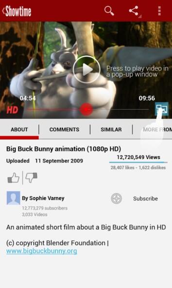Showtime ist meine Meinung nach eine sehr gute Youtube-Alternative. Videos können mit der App im Fullscreen abgespielt werden, im Hintergrund weiter laufen (Icon in der Benachrichtigungsleiste) und mit dem Popup-Player ist auch echtes Multitasking möglich.