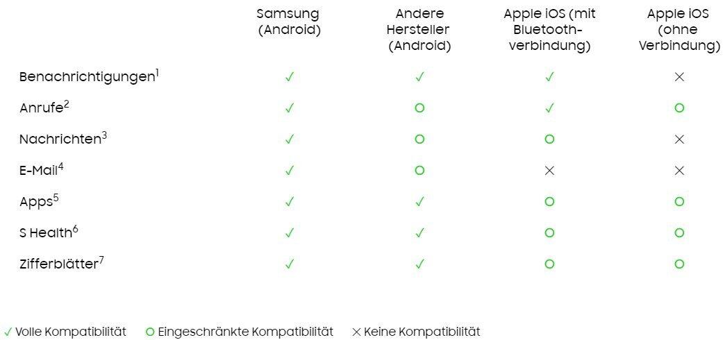 Schon vor dem Kauf klar, aber dennoch hier eine Erwähnung wert ist die 100 %ige Kompatibilität der Uhr, welche lediglich mit einem Samsung Smartphone wirklich gegeben ist. Auf der einen Seite verständlich, auf der anderen Seite aber im Grunde auch unnötig. Bleibt eine Entscheidung von Samsung, aber nervt.