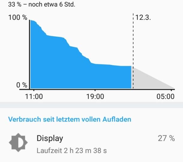 So verzichtet der Hersteller beim X1 auf eine Möglichkeit der Schnellladung, um das Gerät bei leerem schnell wieder fit für den nächsten Ausflug zu machen. Folgende Prozentwerte der Akkuladung konnte ich bei Anschluss an das (Quick-Charge-fähige) Ladegerät festhalten:
