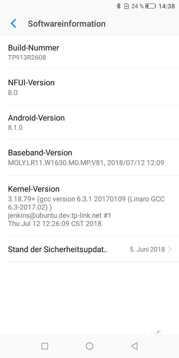 - Betriebssystem: Android 8.1 und NFUI 8.0