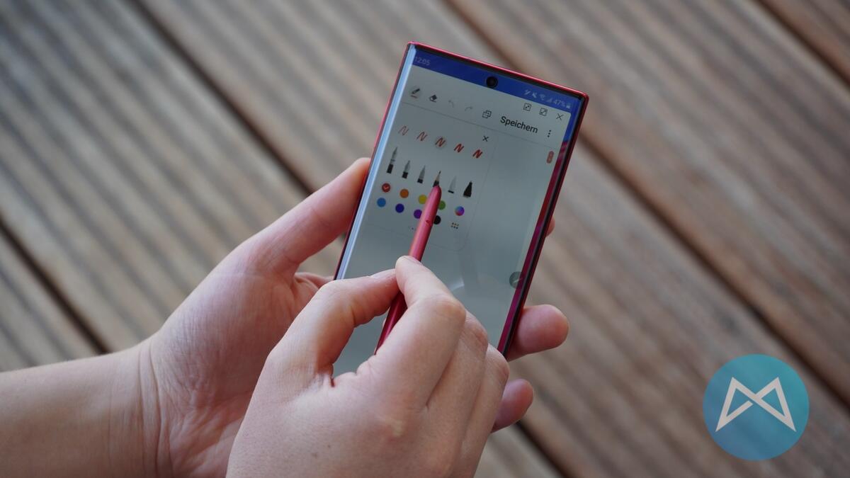 Besonders schick ist auch die Front, denn der rote Rahmen rund um das Display wirkt sehr edel. Natürlich ist nicht nur das Gerät selbst, sondern auch der S-Pen in Rot gehalten. Auch an der Verpackung ist die rote Farbe sofort sichtbar.