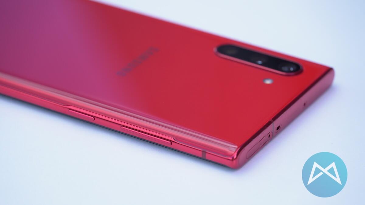 Die Farbe Aura red ist meiner Meinung nach ein Traum. Schade, dass man das Note 10 nicht auch offiziell in Deutschland in dieser Farbe kaufen kann. Die Rückseite schimmert je nach Lichteinfall in einem leicht anderen rot.