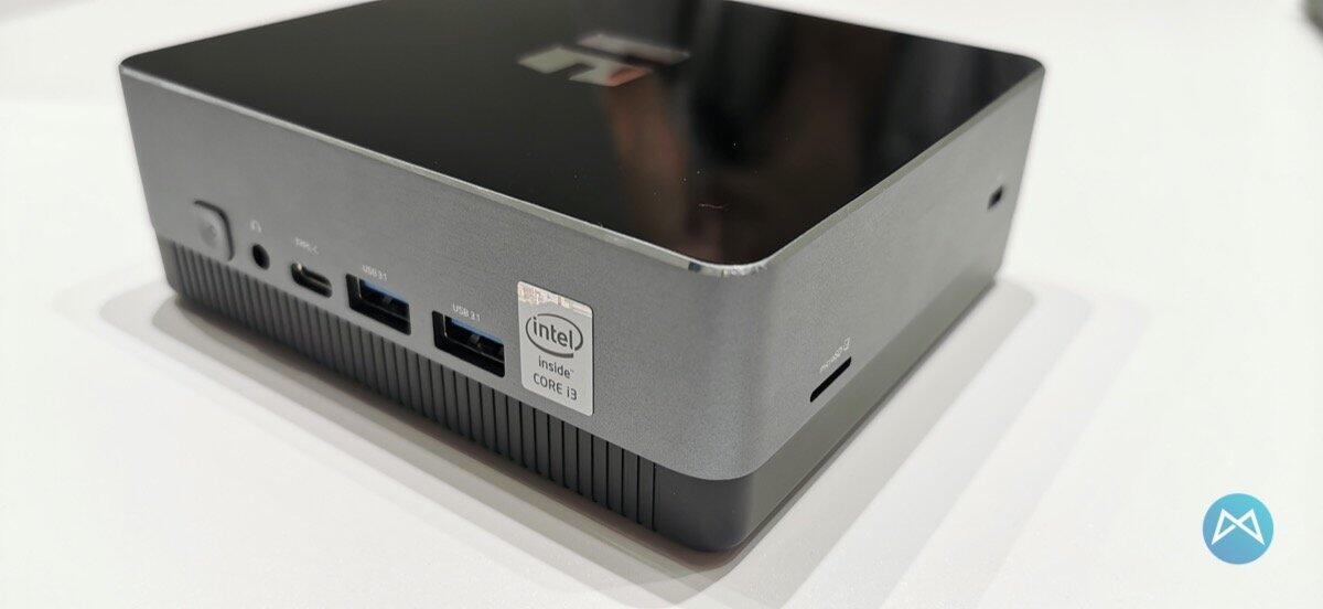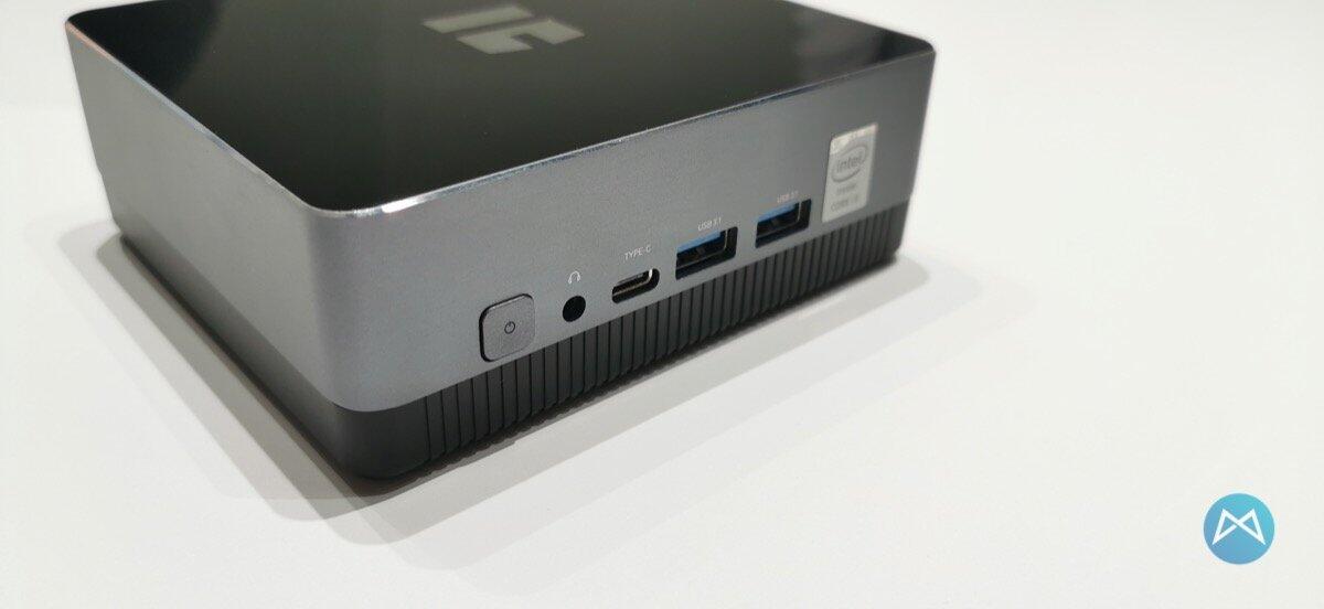 Dann gab es auch noch den TREKSTOR WBX5005 MiniPC mit einigen Anschlüssen zu sehen. Zwei USB 3.1 Anschlüsse sind ebenso an Bord, wie auch der HDMI-Anschluss und ein USB Typ-C Anschluss. Dazu gibt es noch einen Klinkenstecker und den Powerbutton.