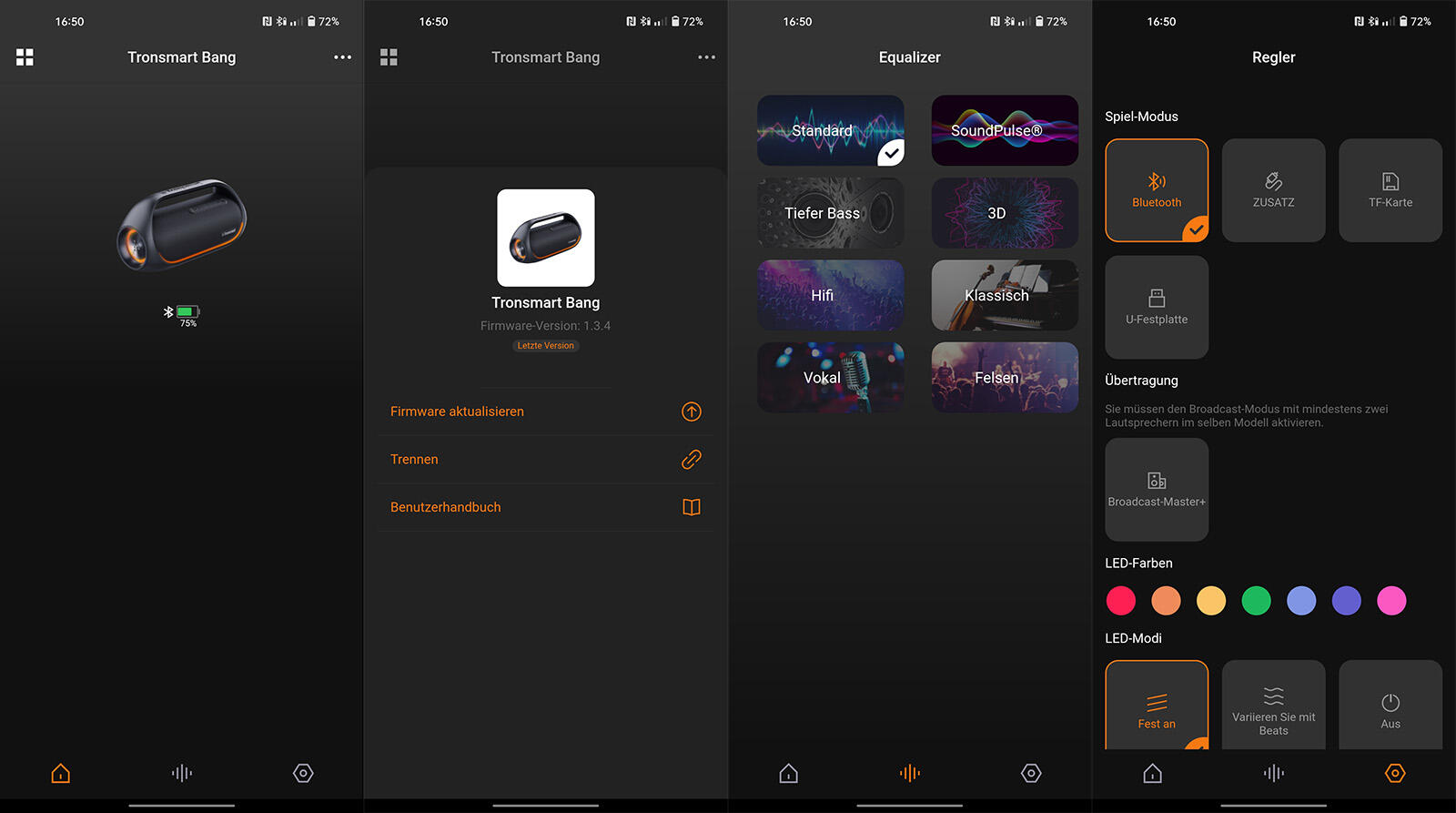 Grundsätzlich funktioniert der Lautsprecher natürlich auch ohne App, aber es empfiehlt sich dennoch selbige herunterzuladen und damit den Tronsmart Bang 60W erst einmal auf die aktuellste Firmware zu trimmen.