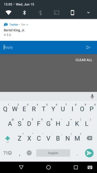 Für persönliche Nachrichten an den Bekanntenkreis werden zwar wahrscheinlich die wenigsten unter euch Twitters Direktnachrichten nutzen, könntet dies aber nun ab Android N wesentlich nahtloser machen. Eigentlich nutzt man Twitter aber auf eine etwas andere Art und Weise, die direkte Antwort auf einen Tweet ist aber weiterhin nicht möglich. Aber ein Schritt in die richtige Richtung ist getan. Auf Android Wear Devices wird es aufgrund dessen Antwort-Funktion auch so sein, dass ihr Antworten diktieren könnt oder sogar mit Emojis antworten könnt.