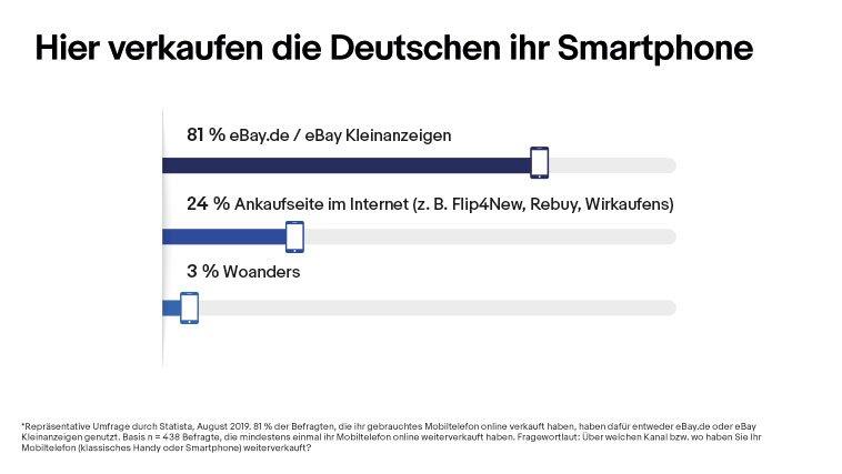 eBay ist die Nummer 1 beim Wiederverkauf gebrauchter Handys. Das zeigt eine repräsentative Umfrage des Markt- und Meinungsforschungsinstituts Statista im Auftrag des Online-Marktplatzes.