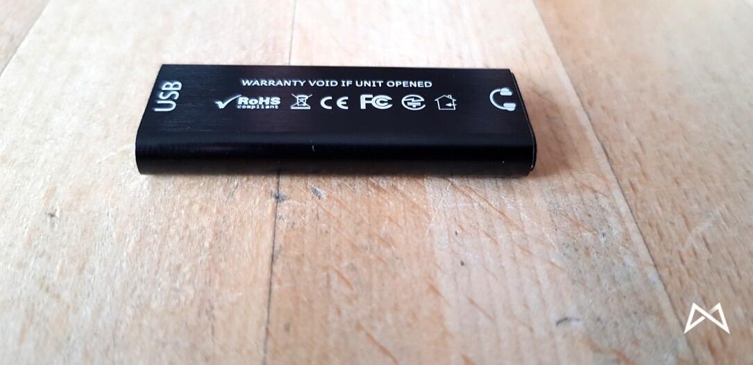 Die beiliegenden Adapter sind alle mit wenigen cm Kabel versehen. Damit lässt sich der gerade mal USB-Stick große NAOS prima in der Hosentasche verstauen. Bedientasten finden sich am NAOS übrigens nicht.
