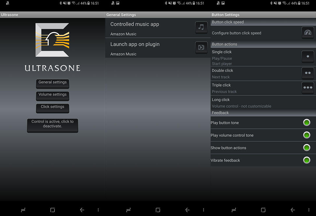 Da der beiliegenden Fernbedienung nur ein Knopf verpasst wurde, kann damit unter anderem ein Doppel- und Tripple-Klick zugeordnet werden. Aber auch beispielsweise die Standardlautstärke nach dem einstöpseln des Kopfhörers und ob eine bestimmte App direkt gestartet werden soll. Dies klappte in meinem Fall mit Amazon Music direkt auf Anhieb.