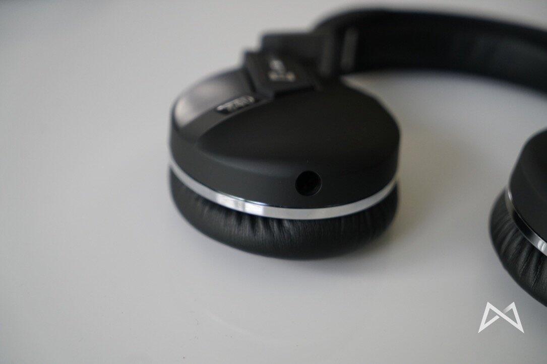 Auf der Unterseite der linken Ohrmuschel befindet sich der Klinkenstecker-Anschluss mit Bajonettverschluss. Hier wird das Kabel eingesteckt und durch einen kurzen Drehvorgang arretiert. Die beiden Polster sind wirklich angenehm groß und haben auch nach längerem Musik hören nicht gedrückt. Für meinen Geschmack eine ideale Mischung für Komfort und Halt. Die Ohrmuscheln sind um 90 Grad drehbar, damit die Kopfhörer leichter zu transportieren sind.