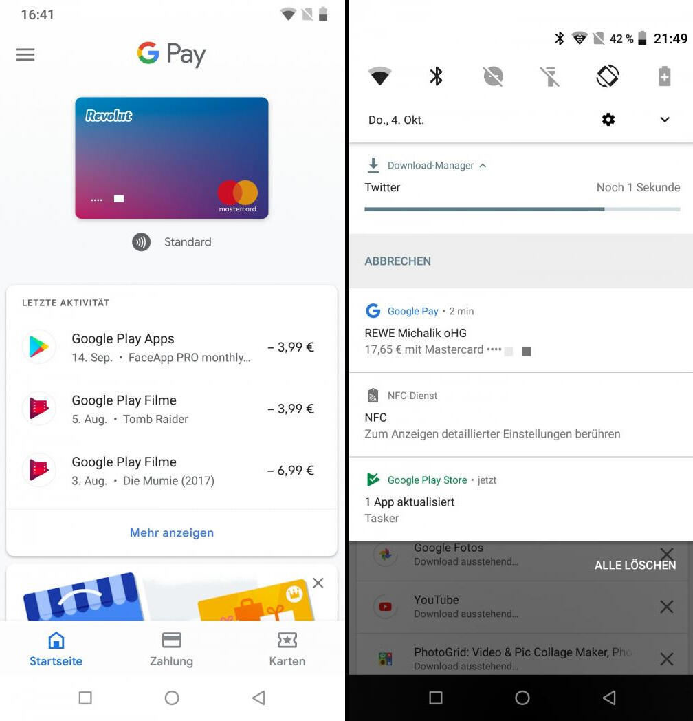 • NFC / Google Pay arbeitet problemlos auf dem Umidigi Z2 Pro. Habe dazu testweise die Revolut-Karte hinzugefügt und beim örtlichen REWE mit dem Handy an der Kasse bezahlt. Funktioniert astrein!