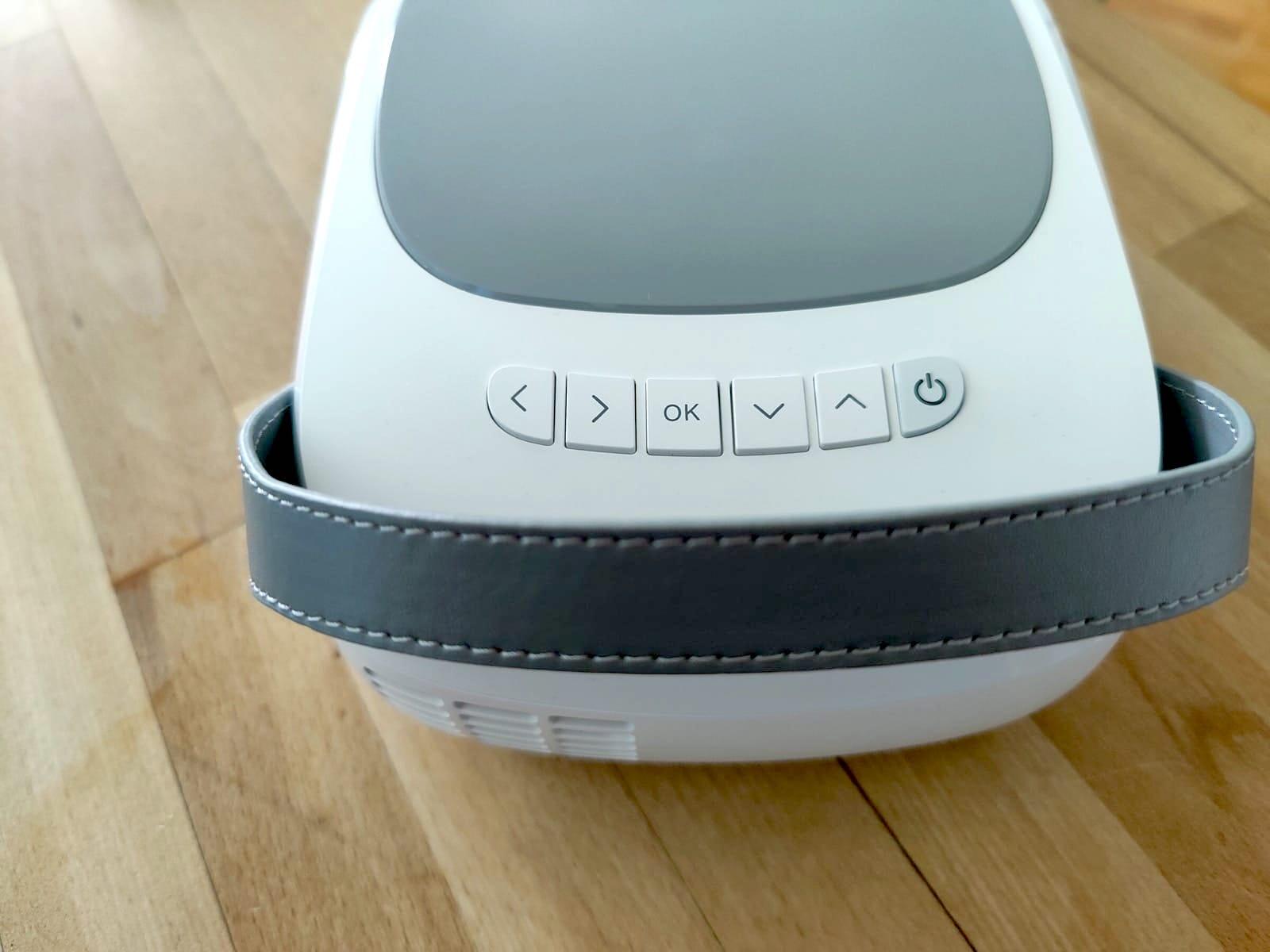Der Beamer kann fast komplett über Tasten auf der Oberseite gesteuert werden. Wahlweise steht auch eine Fernbedienung zur Verfügung. Zwei AAA Batterien waren nicht im Lieferumfang.